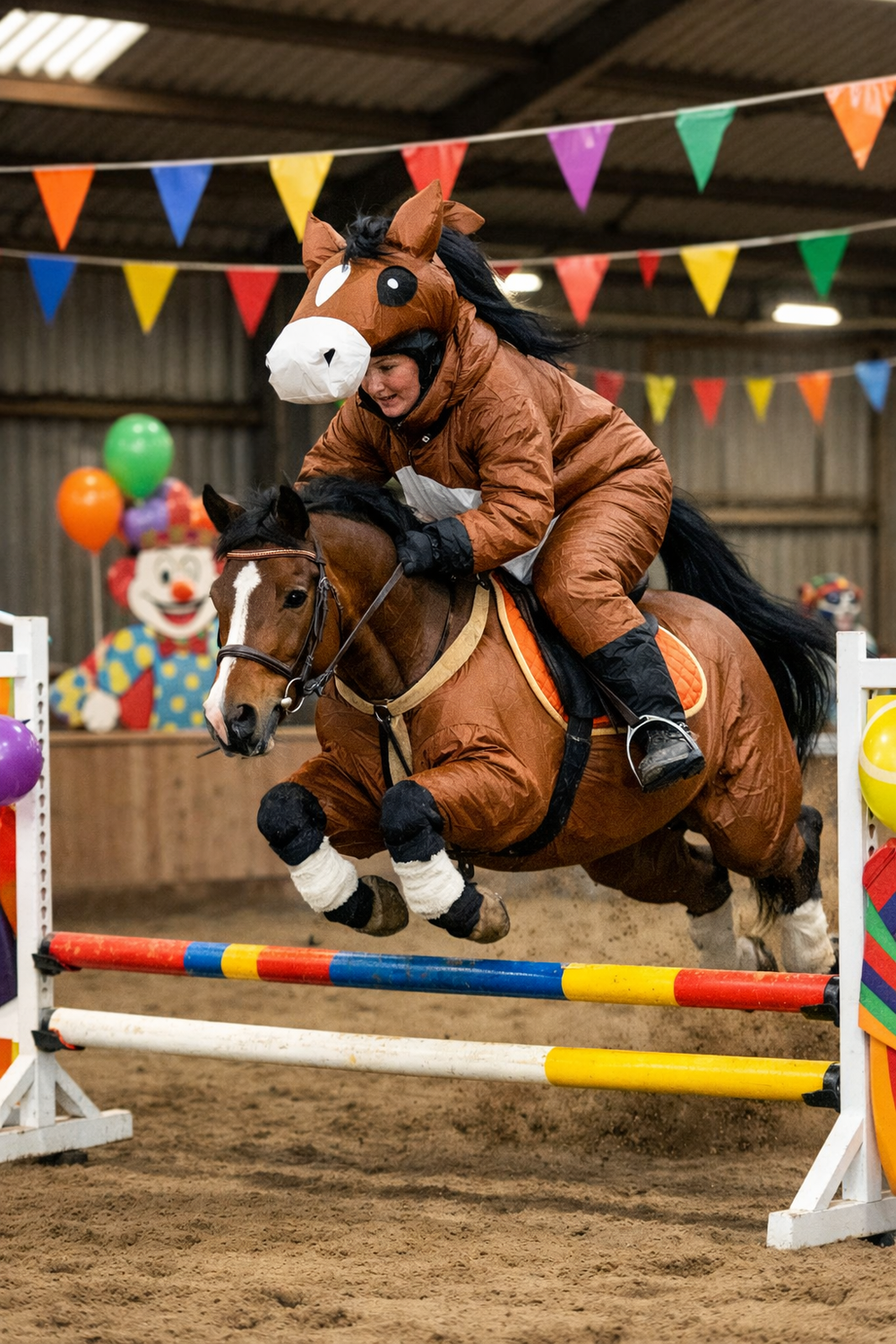 Deze springwedstrijd staat volledig in het teken van carnaval! Dat betekent: feest, kleur, gezelligheid en natuurlijk… verkleed de ring in! Ruiters mogen verkleed deelnemen (veiligheid blijft natuurlijk voorop), en we zorgen voor een vrolijke, ontspannen sfeer waarin plezier, lachen en samen genieten centraal staan. En tussen al het feestgedruis door rijden we natuurlijk ook gewoon een mooi en leerzaam parcours! Er zijn originaliteitsprijzen te winnen voor het mooiste kostuum!